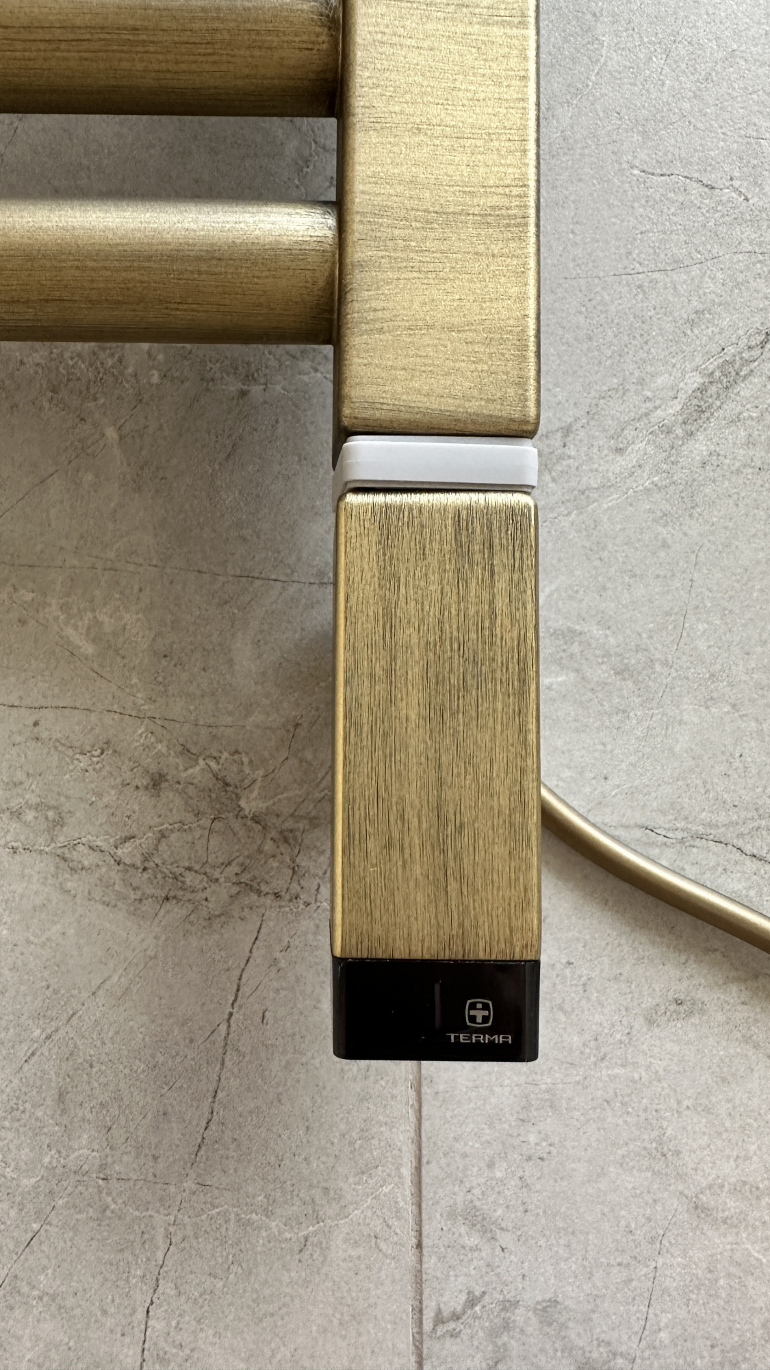 Подробные характеристики Полотенцесушитель электрический Terma Fiona 1140x500 Brushed Brass тен ONE.